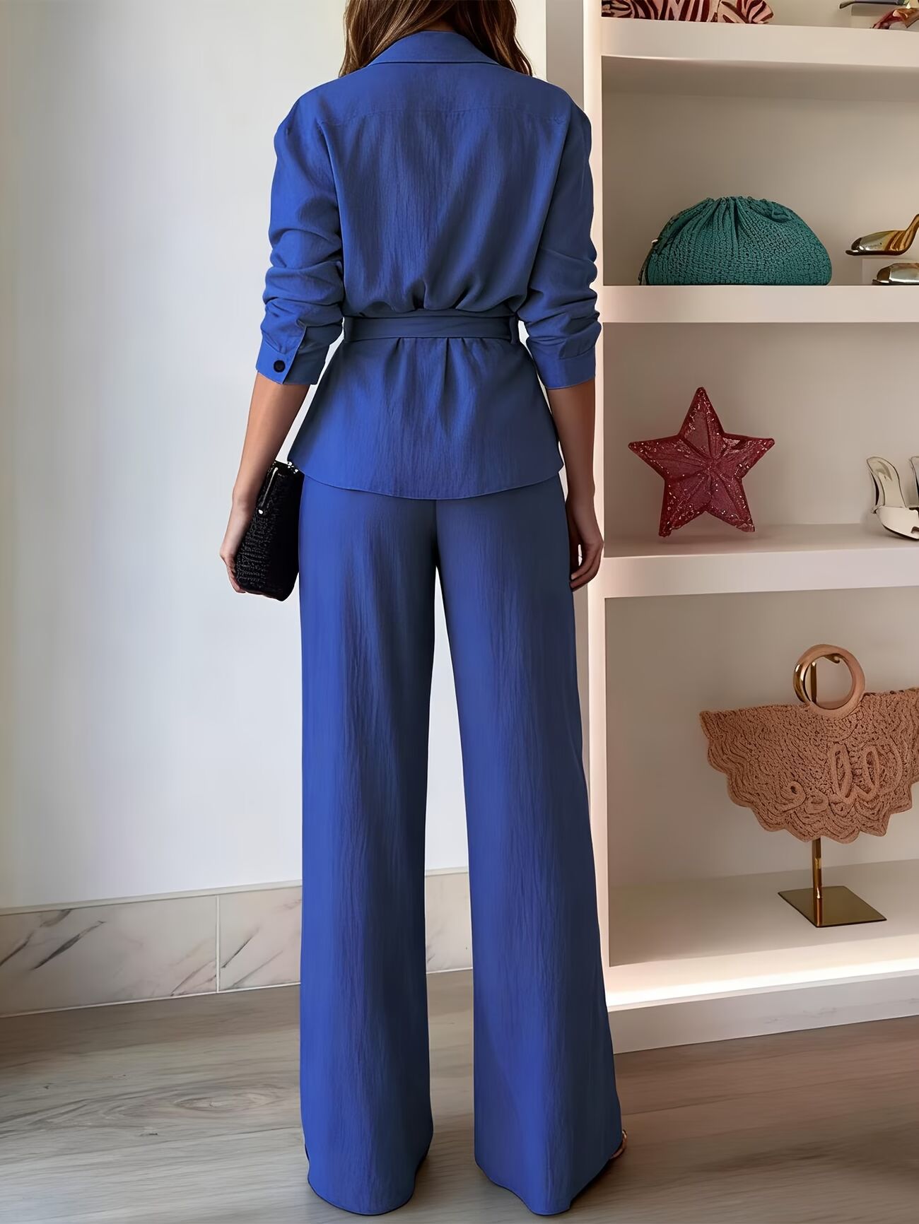Casual Two-Piece Set Long Sleeve Shirt and Wide-Leg Pants