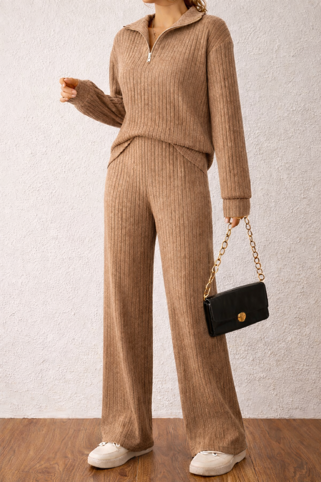 Half-Zip Casual Slit Knitted Two-Piece Set