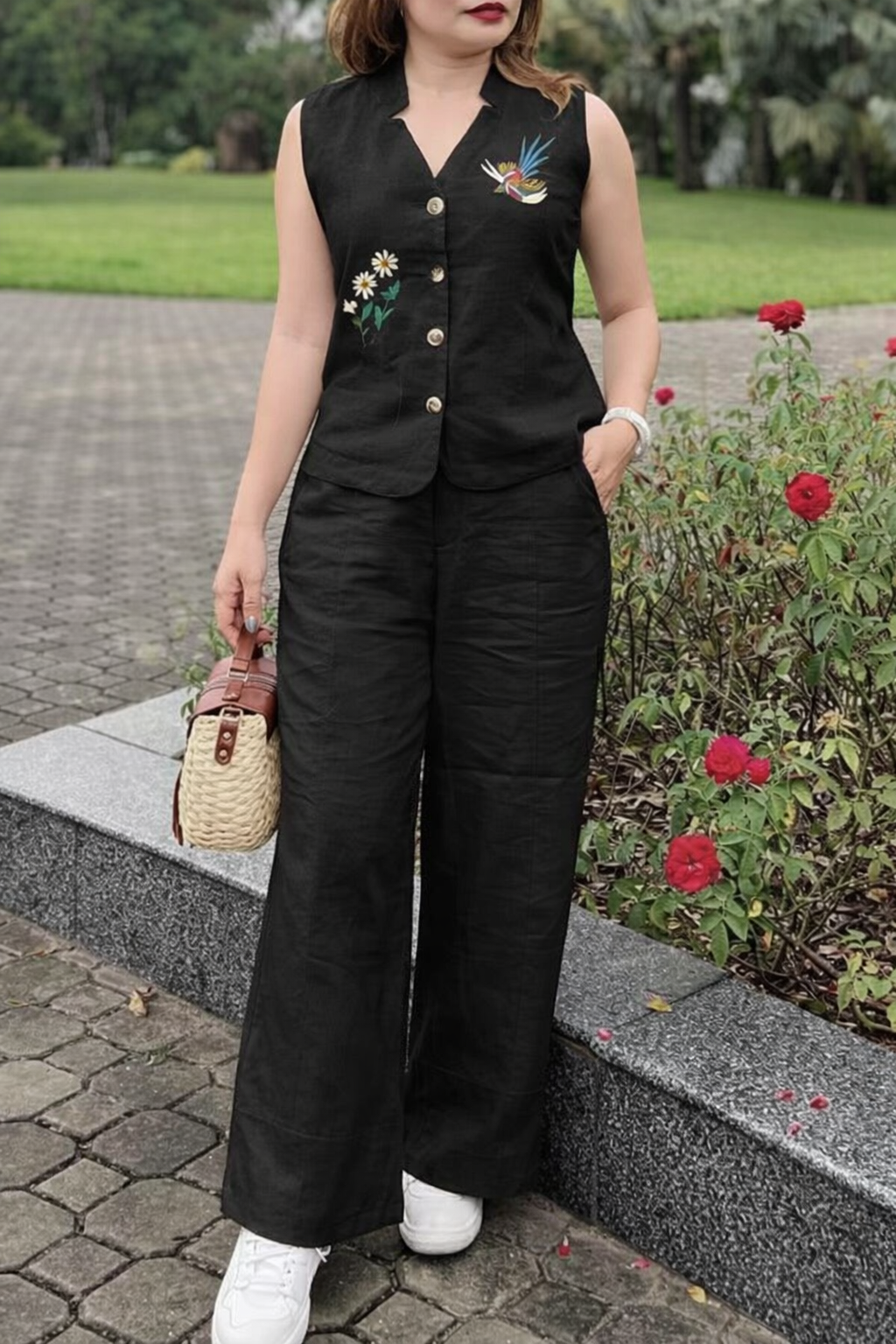 WOMEN EMBROIDERY CROP TOP & TROUSERS CO-ORDER SET