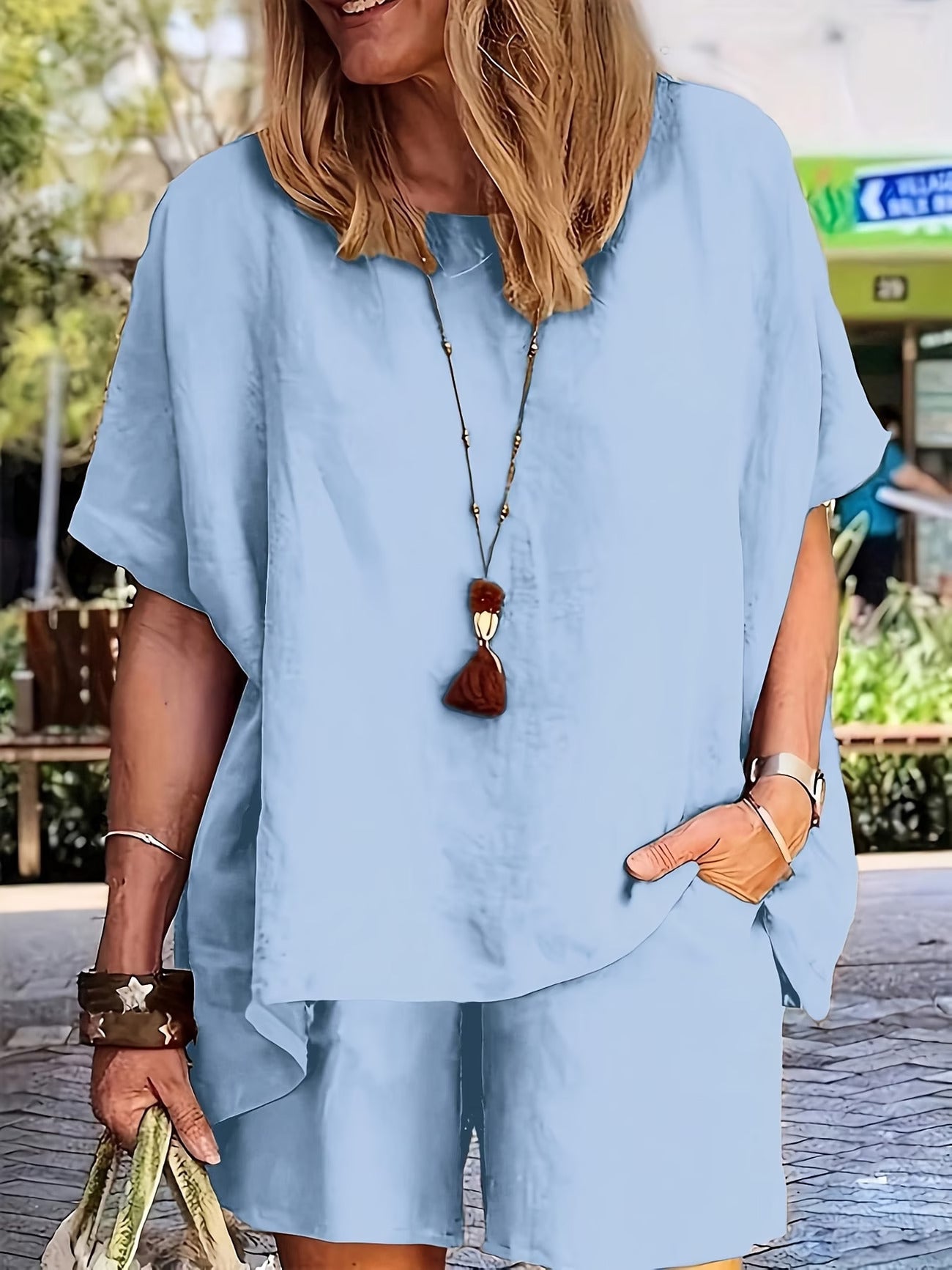 • Women Summer Sets Short Sleeve Crew Neck Tops And Bottom