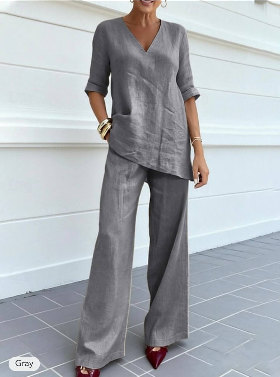 Women's Two Piece Sets V Neck Half Sleeve Top And Pants Sets – Richy Looks